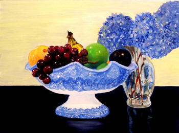 "Fruit Bowl and Hydrangeas"
